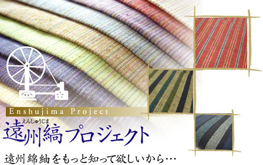 私たち遠州縞プロジェクトでは、この遠州綿紬の伝統と技術を継承し、感性豊かに新たな商品化・ブランド化を図り、人と町を元気にする事を目指しています。