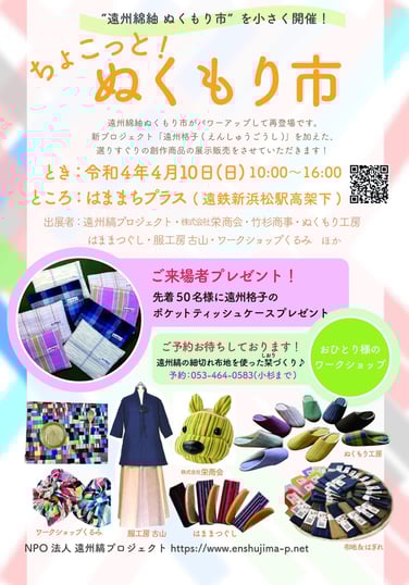 遠州綿紬の魅力を発信する「ぬくもり市」、遠州綿紬を使った感性豊かな新商品をご紹介します。